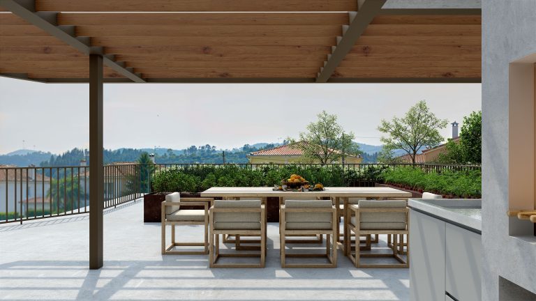 Os detalhes são o que imprimem na Salega um traço de autenticidade inspiradas no cru que define este recanto, entre os pormenores metálicos a castanho, os tons verdes dos jardins e hortas e os amadeirados presentes nas portas e pérgolas.