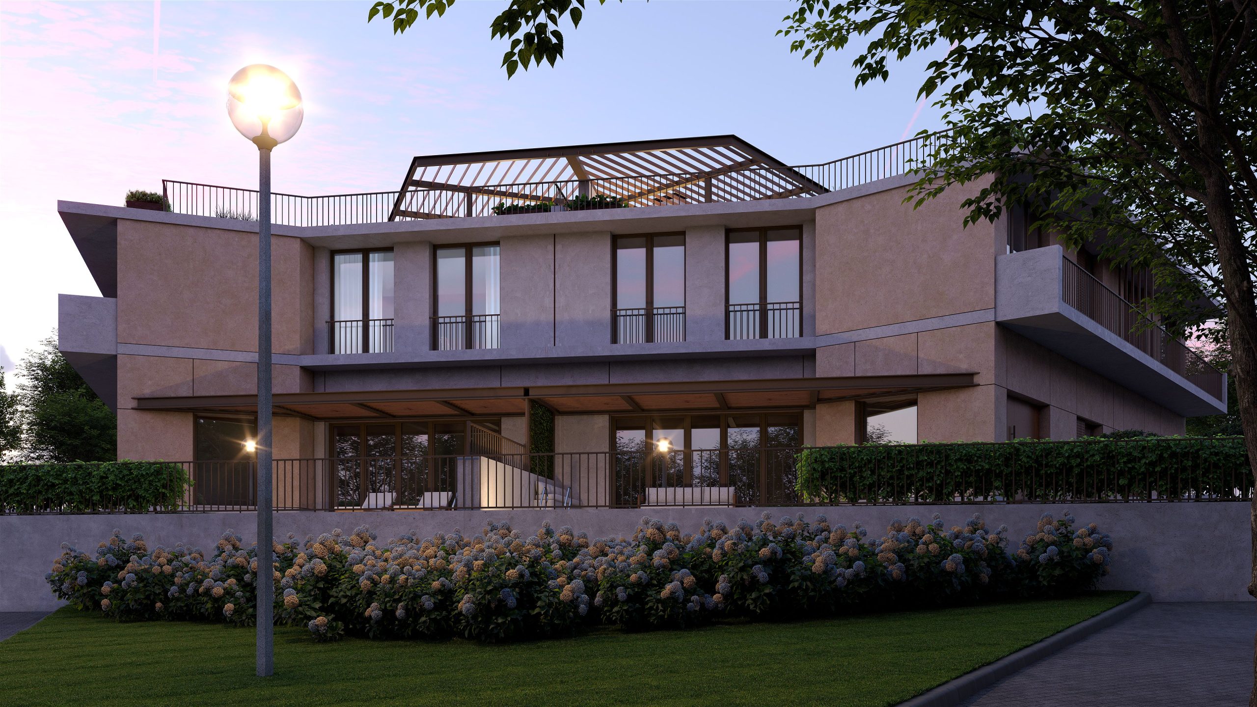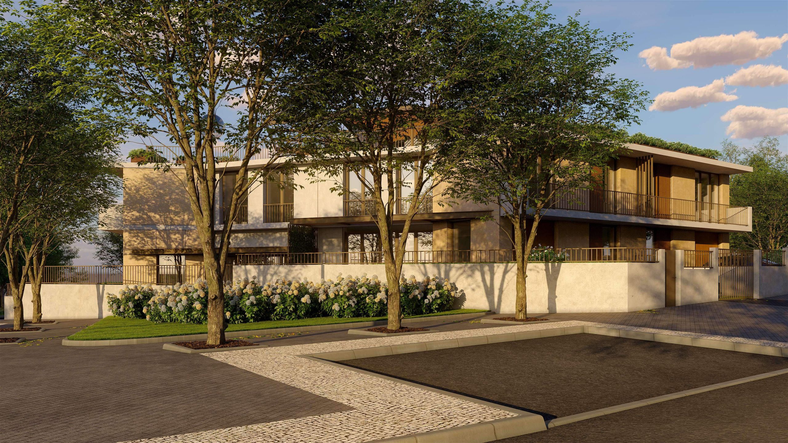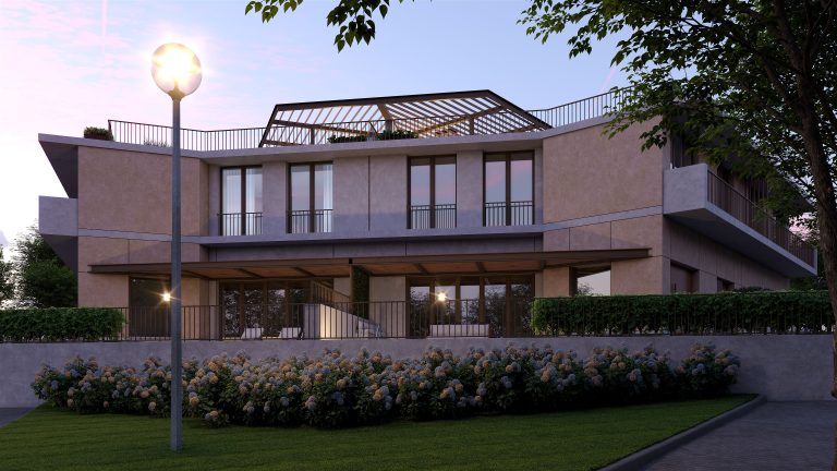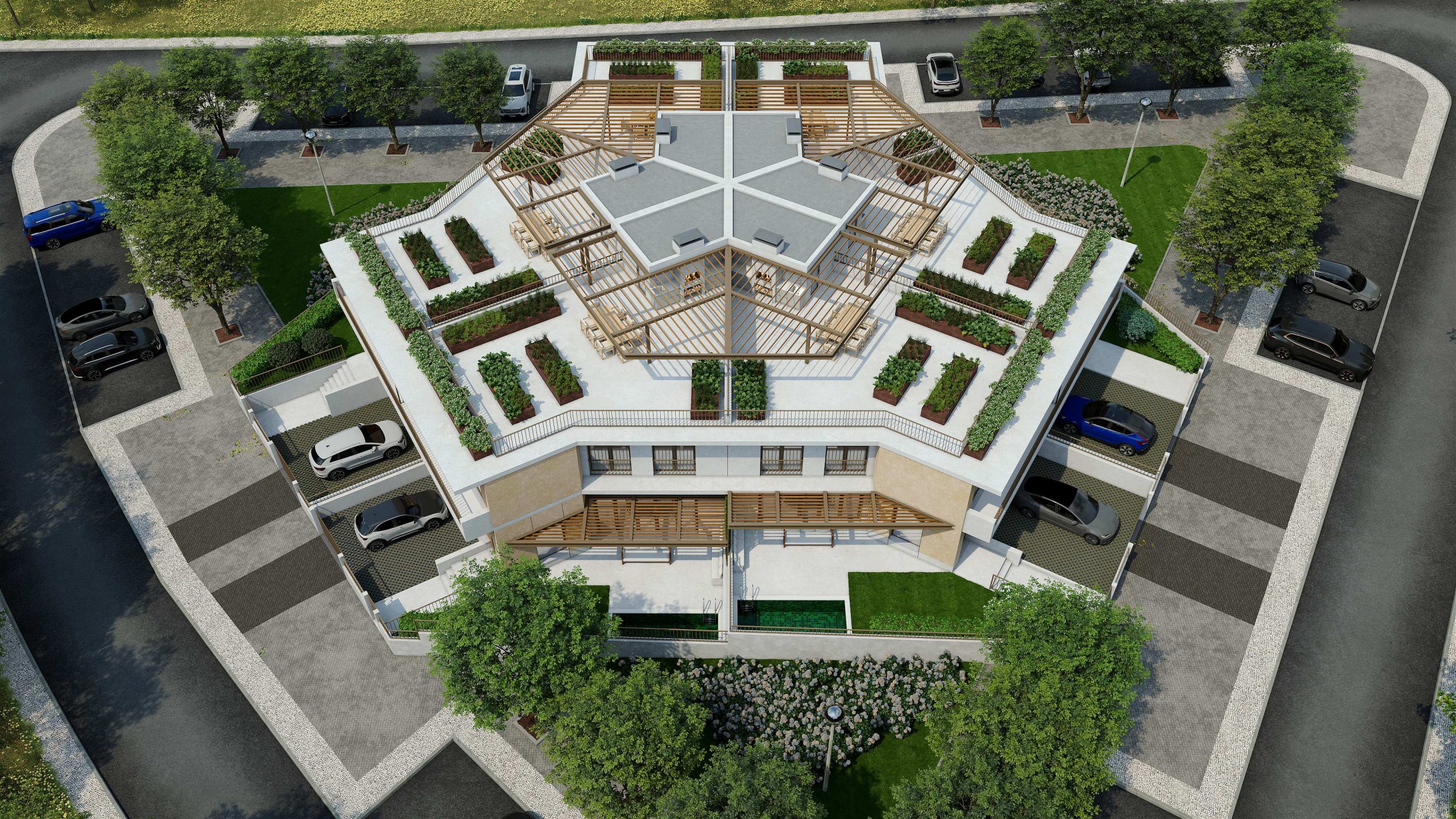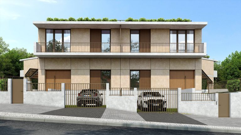 De um hexágono desenhou-se o ponto de partida deste conjunto habitacional, foi no recato natural e familiar que se esquissou a inspiração numa linguagem orgânica e profundamente assente na malha em que se insere. As seis moradias geminadas apresentam uma relação de simetria em que cada habitação de tipologia T3 é representada pelas fachadas em tons cinza e cru, dotado de logradouros verdes com piscinas privativas e hortas biológicas, enquanto que as amplas coberturas são rematadas por pérgulas que convidam a experienciar a serenidade que caracterizam a área.